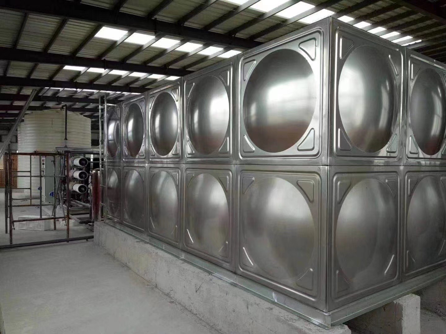 2、不銹鋼沖壓板:通過模壓成型,表面凸起狀,一部分為了保障水箱側(cè)面不隨著時(shí)間的增加而變形,一部分為了承壓能力與美觀程度。